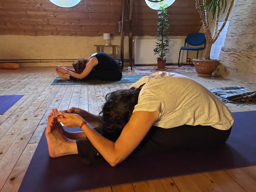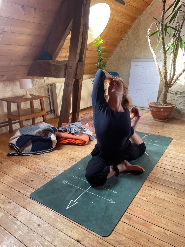 Lors de cette retraite, j’ai pu aprofondir ma pratique avec une sensation d’apaisement, notamment par le développement et une meilleure prise de conscience de ma capacité intuitive. J’ai alors pu réalisé que le pranayama est à la fois un sens de connaissance pour nous renseigner sur notre environnement subtil; et un sens d’action pour porter notre action dans le monde. Quoique l’on fasse, il n’y a pas d’erreur; l’action et l’intention qui la guide s’imposent. Sur le tapis comme dans la vie, nous sommes amenés à pratiquer et composer avec l’énergie qui nous traverse, avec une attention particulière aux corps et champs énergétique. Nous serions alors plus aptes à se laisser traverser par l’action juste, et à vivre le triptyque Action-Equilibre-Dissolution; tout comme dans un asana. Une définition aiguisée de notre rôle se révèle aussi incontournable pour qu’une action soit juste. Nous parlons ici de l’ordre naturel des choses, le Dharma. A travers nos expériences, notre attention portée sur une chaîne d’actions et ses conséquences, nous sommes amenés à discerner ce qui est juste ou non, ce qui est dharma ou adharma. Cela nous rappelle que la voie du yoga est une voie d’abrasion, nous amenant à nous percevoir comme un pot vide pour mieux ressentir et percevoir ce qui nous traverse. Nous pouvons ainsi par la suite remplir cet espace du rôle qui nous est imparti pour mieux en définir les limites , et agir en conséquence de manière juste.