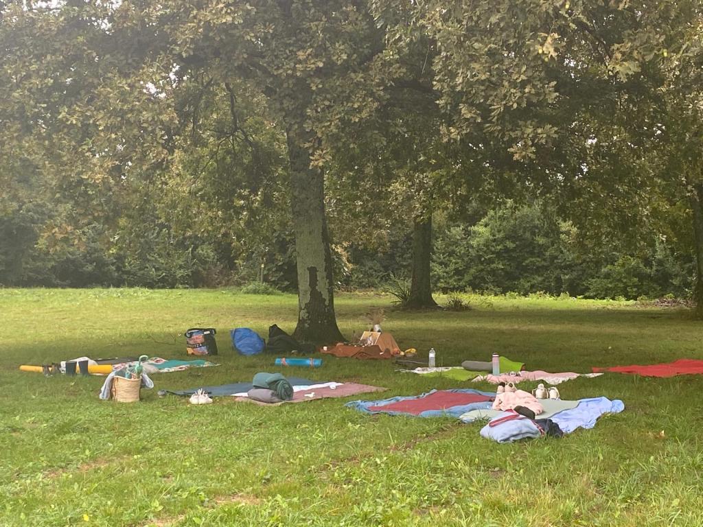 Vous aurez besoin d’un tapis de yoga par personne, d’une couverture par personne, d’une bouteille d’eau éventuellement.